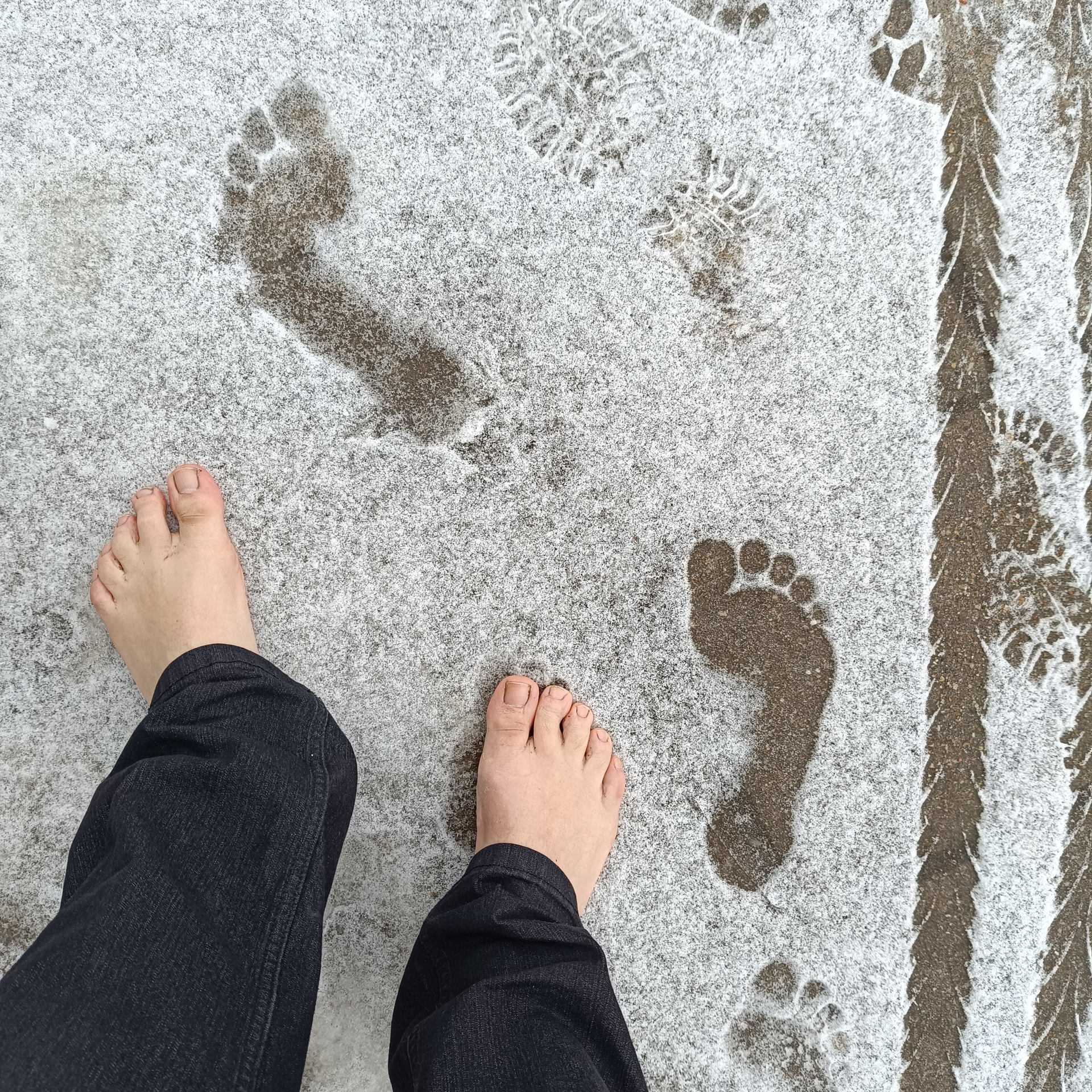 Barfuß länger in den Schnee traue ich mich derzeit nicht. Ich habe immer schnell kalt. ![]()